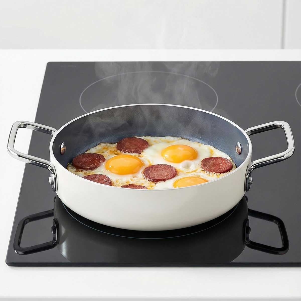 - Yağsız kullanım özelliği: Sağlıklı beslenmeye özen gösterenler için harika bir özellik! Seramik sahanı yağsız olarak kullanabilirsiniz. Bu sayede daha hafif ve sağlıklı öğünler hazırlayarak formunuzu koruyabilirsiniz.